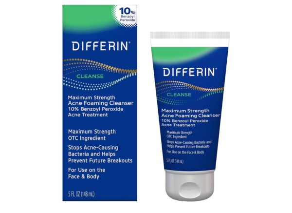 Differin 10% Benzoyl Peroxide Maximum Strength Acne Foaming Cleanser – 118ml