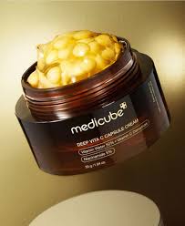 MEDICUBE Deep Vita C Capsule Cream with Vitamin Water 50% + Vitamin C derivatives and NIacinamide 5%, is the perfect solution for wrinkles, increases skin radiance, and includes a transparent gel for glow hydration. This dermatologist-tested cream enhances the delivery of Vitamin C deep into the skin with stabilized liposome capsules, promising visible improvements with consistent use. Customize the capsule-to-gel ratio for a stable, soothing blend that absorbs effortlessly into the skin for everyday use